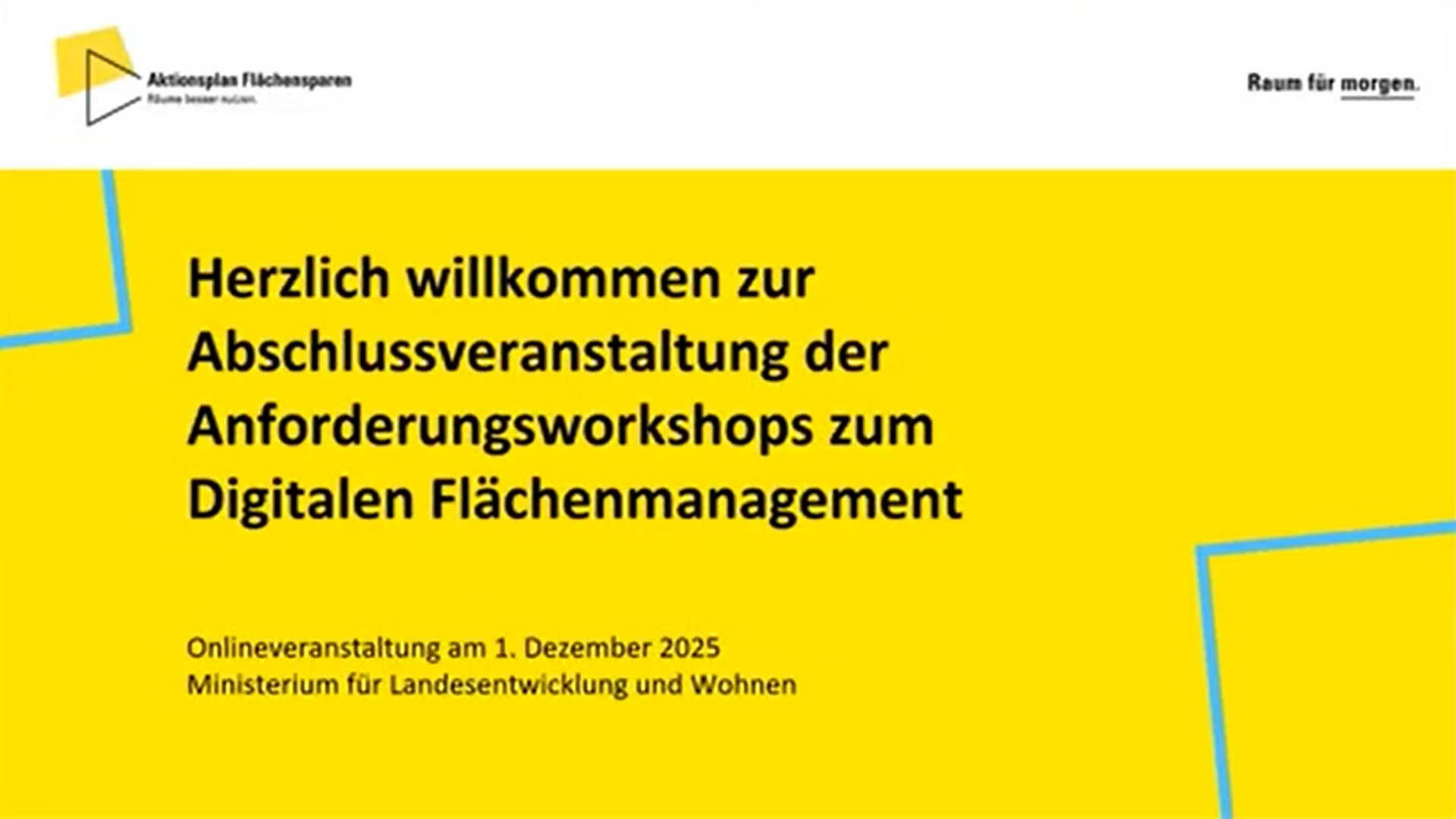 Die Auftaktveranstaltung fand am 8. Juli 2025 statt und stellte den offiziell Start in das Projekt dar. Hierbei konnten sich die Teilnehmenden aus den Kommunen, Regionalverbänden und Regierungspräsidien digital über das Konzept des Digitalen Flächenmanagements, den Zeitplan und die Mitwirkungsmöglichkeiten informieren.