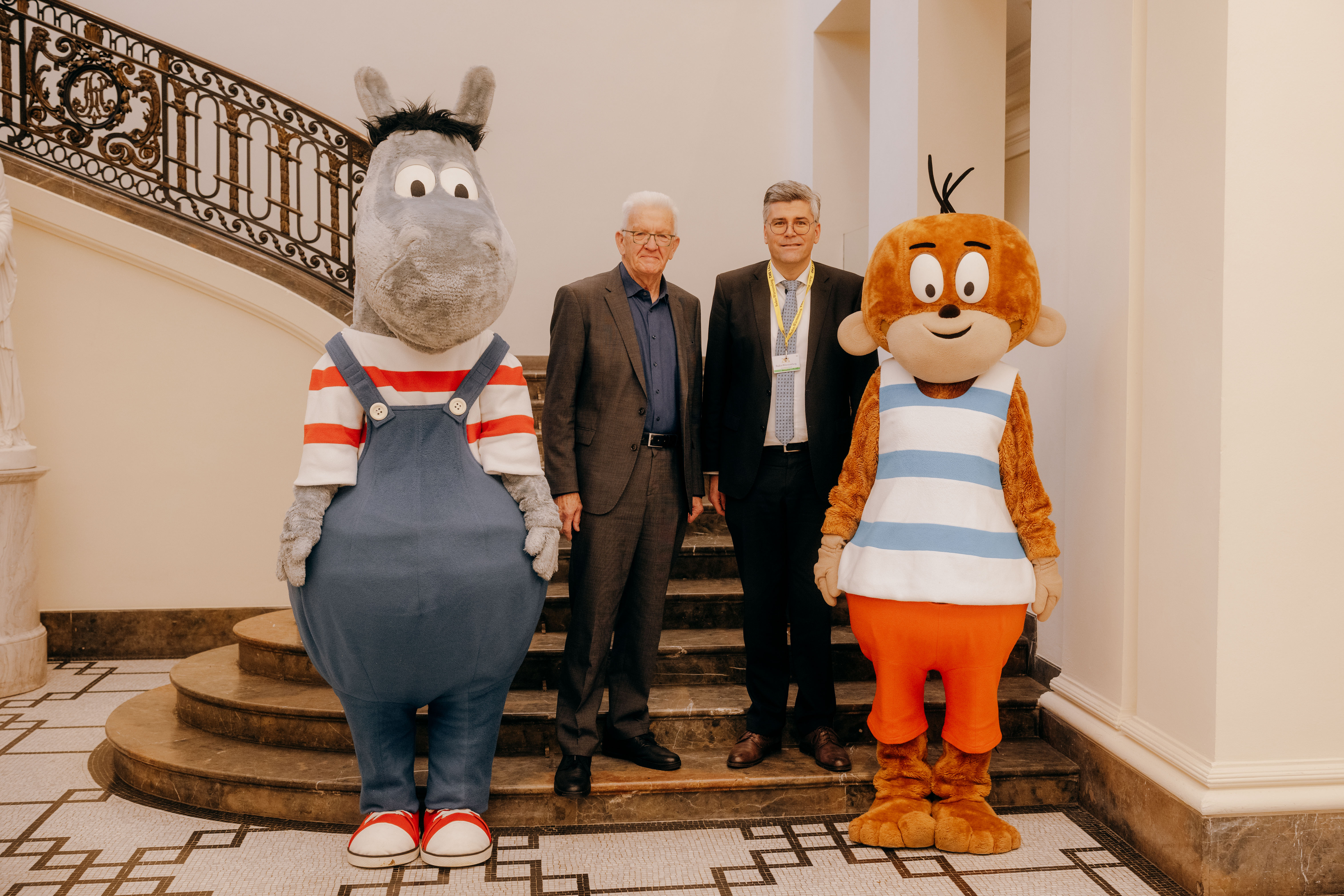 Mit viel Herz, Humor und einer großen Portion Heimatgefühl werden Äffle & Pferdle zu den ersten Dialektbotschaftern Baden-Württembergs. Ministerpräsident Winfried Kretschmann zeichnet die Kultfiguren aus.