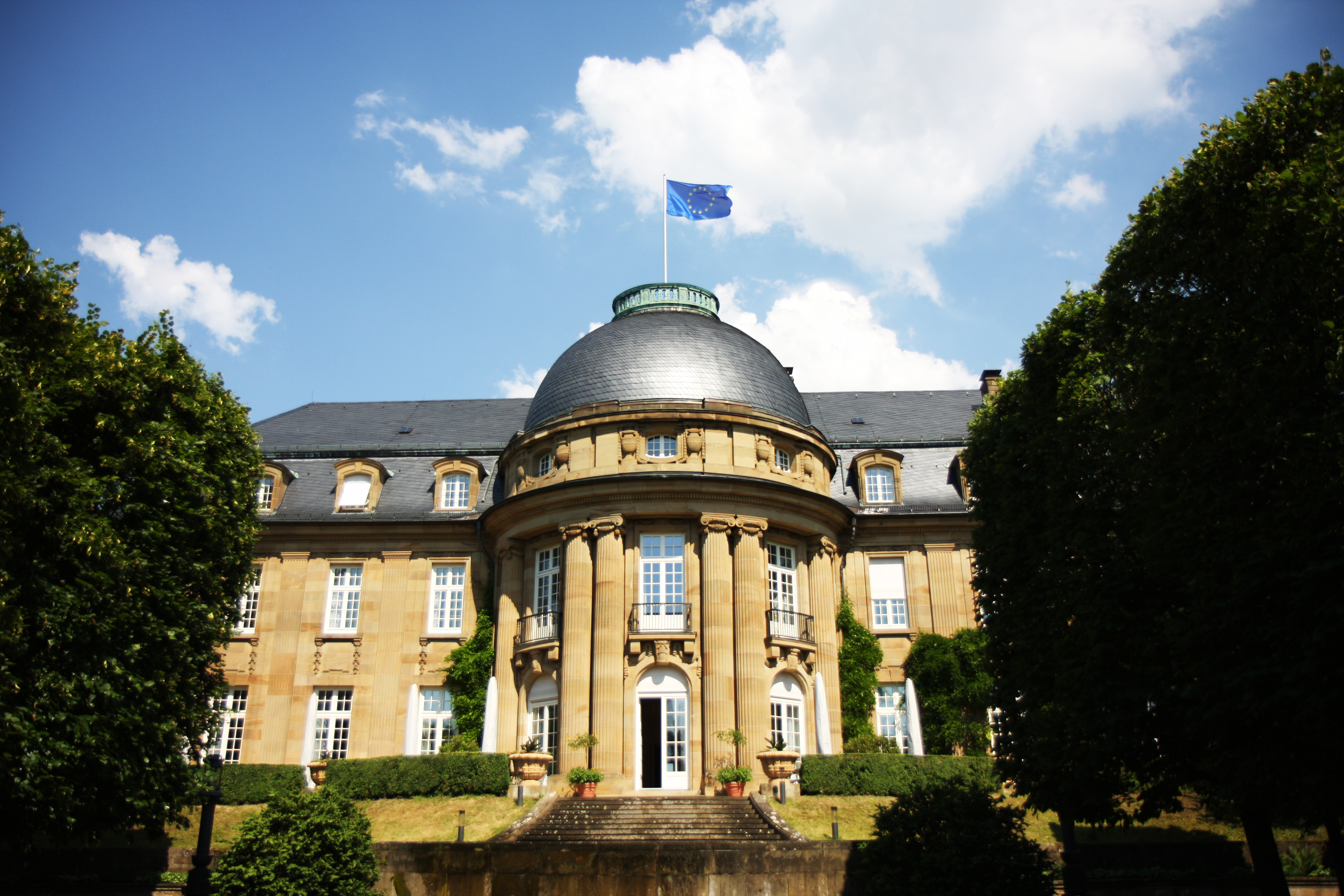 Die Europaflagge auf der Villa Reitzenstein