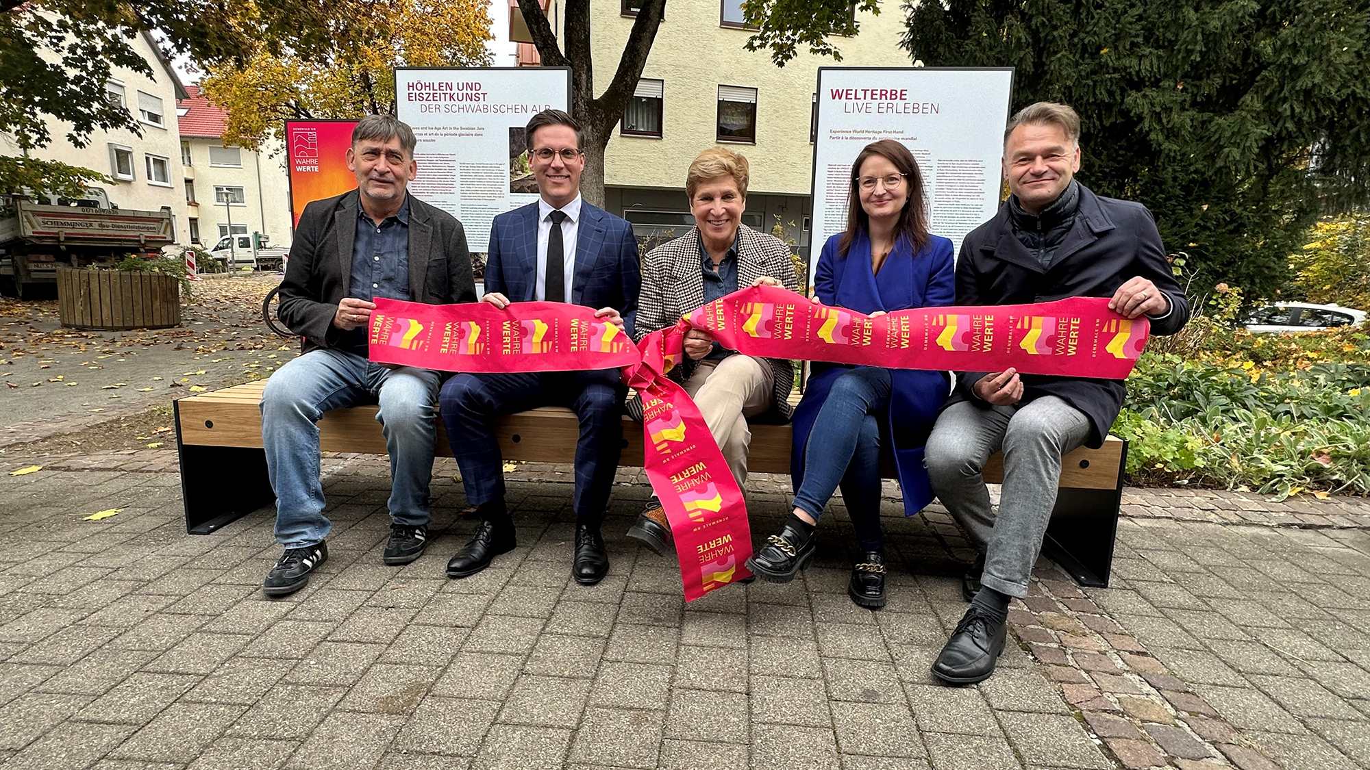 Gemeinsam mit der Stadt Blaubeuren hat die Ministerin für Landesentwicklung und Wohnen, Nicole Razavi MdL, am 20. Oktober 2025 im Park an der Karlstraße in Blaubeuren zwei WahreWunderBänke eingeweiht. Die neuen Informationseinheiten machen auf die UNESCO-Welterbestätte „Höhlen und Eiszeitkunst der Schwäbischen Alb“ sowie auf das gesamte Welterbe in Baden-Württemberg aufmerksam.