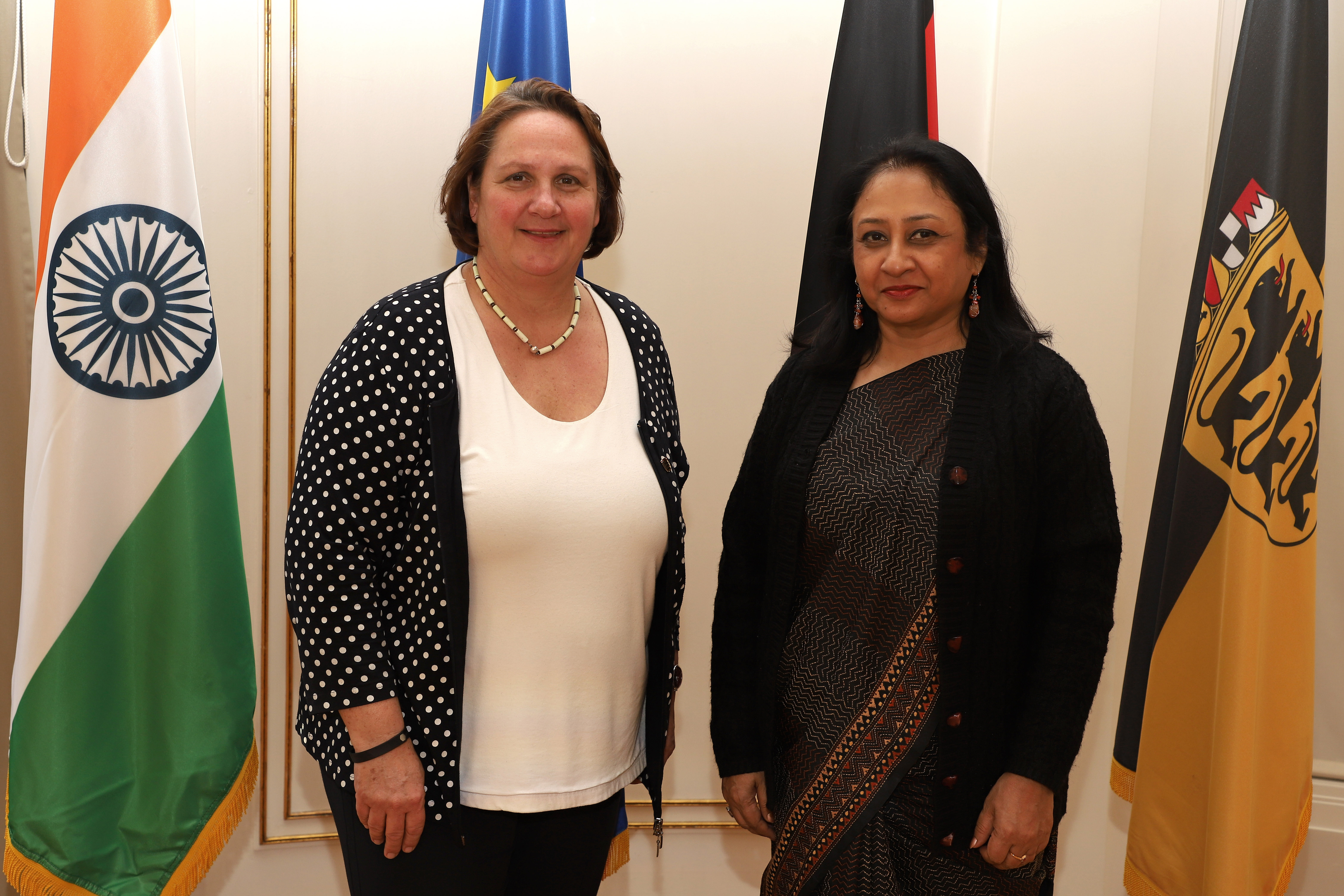 Gespräch Schopper empfängt indische Botschafterin 27.02.2019 Teilen Copyright Staatsministerium Baden-Württemberg Staatsministerin Theresa Schopper (l.) und die indische Botschafterin Mukta Dutta Tomar (r.) Herunterladen Staatsministerin Theresa Schopper hat die indische Botschafterin Mukta Dutta Tomar zu einem Gespräch in der Villa Reitzenstein in Stuttgart empfangen. Zurück zur Übersicht