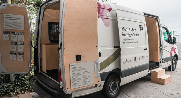 Die Wanderausstellung und das Promotion-Fahrzeug können ab jetzt über die digitale Plattform mehr-leben-im-eigenheim.de von Landratsämtern, Kommunen und Verbänden für ihre Räumlichkeiten gebucht werden. Das Projekt wird im Rahmen des Strategiedialogs „Bezahlbares Wohnen und Innovatives Bauen“ vom Ministerium für Landesentwicklung und Wohnen gefördert und umgesetzt.