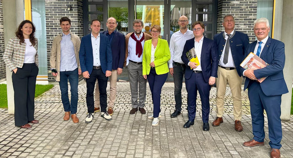 Die Sommertour am Dienstag, 5. August 2025, startete mit einem Besuch der Georg Reisch GmbH in Bad Saulgau. Das Traditionsunternehmen in dritter Generation testet neue Herangehensweisen für nachhaltiges und ressourcenschonendes Bauen, unter anderem recyclingbasierte Baustoffe oder Einsparungen von CO2 beim Bau und Betrieb von Gebäuden. Die Innovationsfreude des Unternehmens zeigt sich beispielsweise bei der Bertha Benz Schule in Sigmaringen. Der Neubau wird im Rahmen einer öffentlich-privaten Partnerschaft vollständig von der Georg Reisch GmbH realisiert, von der Planung über den Bau bis zum technischen Betrieb für die nächsten 25 Jahre. Zudem wird ein nachhaltiges Gebäudekonzept mit modernen Energieeffizienztechnologien in Form von PV-Anlagen sowie einer kombinierten Wärmeversorgung durch eine Luft-Wasser-Wärmepumpe und Fernwärme realisiert.