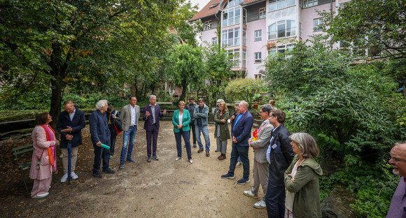 Zum Abschluss des Tages besuchte die Staatssekretärin die Siedlung Schafbrühl in Tübingen – ein Ort, der bereits Mitte der 1980er-Jahre Antworten auf Fragen gab, die uns heute mehr denn je beschäftigen: ökologisches Bauen, bezahlbares Wohnen und gelebte Nachbarschaft. Mit natürlichen Materialien, viel Grün und einem starken Fokus auf Gemeinschaft entstand hier ein alternatives Wohnmodell mit Strahlkraft über die Region hinaus. Der Schafbrühl steht beispielhaft für den Mut, visionäre Ideen umzusetzen.